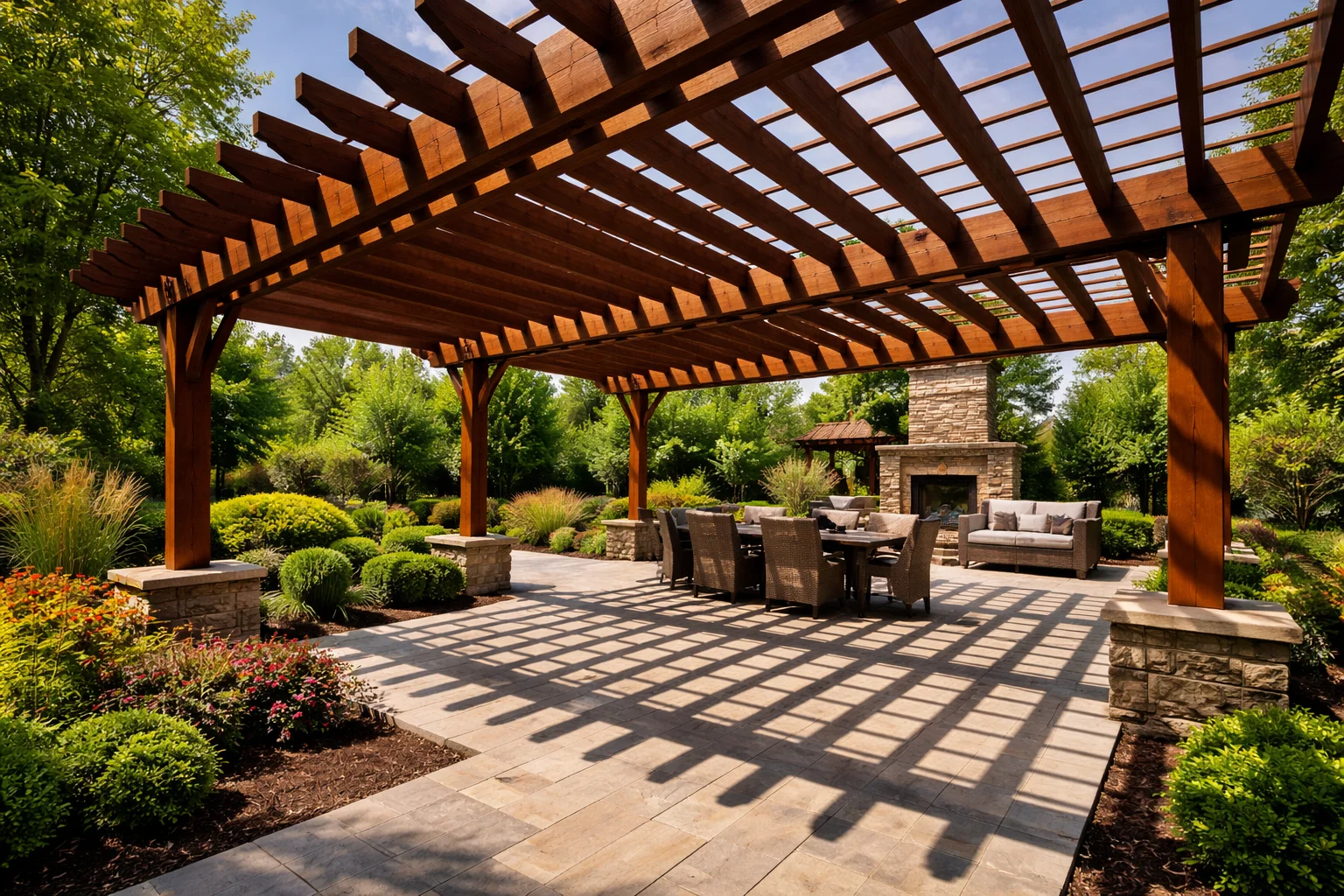 Pergolas, arbors, and patio covers are outdoor statement pieces. We restore and protect these structures with premium stains that enhance wood grain and resist the lakeside humidity.